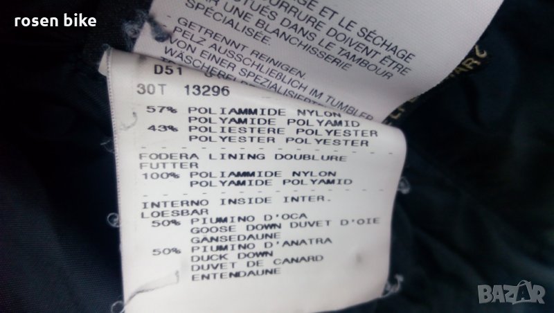 якето е пухено.има забележка на ципа,но се закопчава без проблем.дължина-66 см.подмишници-54 см.ръкав-56 см.рамене-44 см.цената е крайна