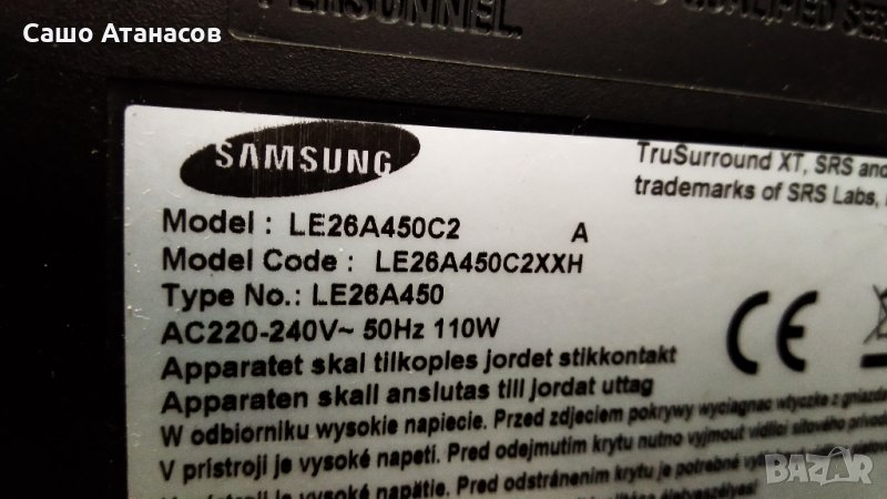 Модули от РАБОТЕЩ телевизор SAMSUNG LE26A450C2 (панел T260XW02 V.L )