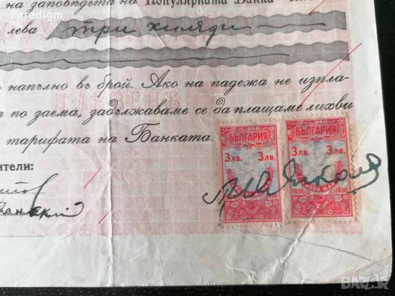 Върху заповедта има общо 2 на брой гербови марки от 1936г. както следва: