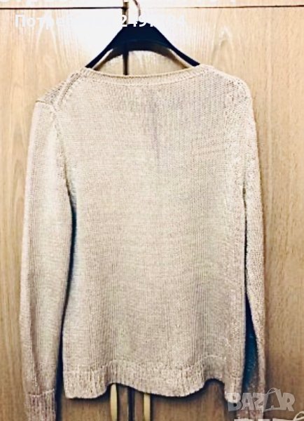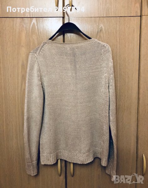 Красив бежов пуловер Massimo Dutt, с интересна декорация отпред, без забележки, състав 69% памук и 2% метализирани нишки