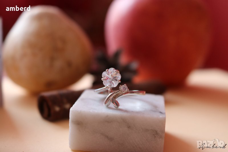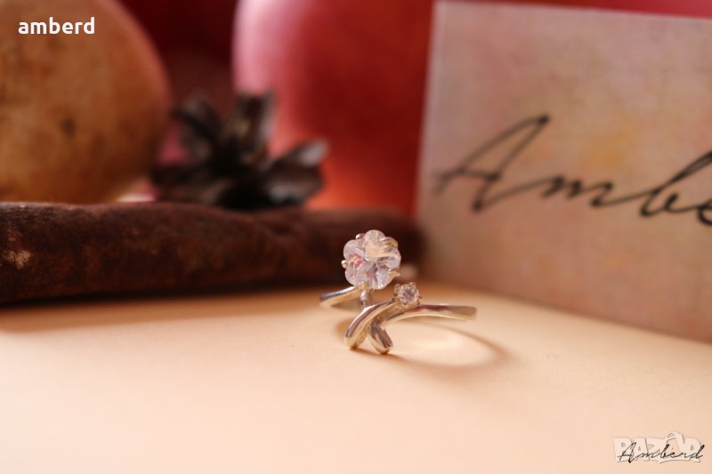 Нежен, елегантен и стилен пръстен, изработен от сребро проба 925 и уникален цирконий във формата на цвете. Вътрешен диаметър 17.8мм.