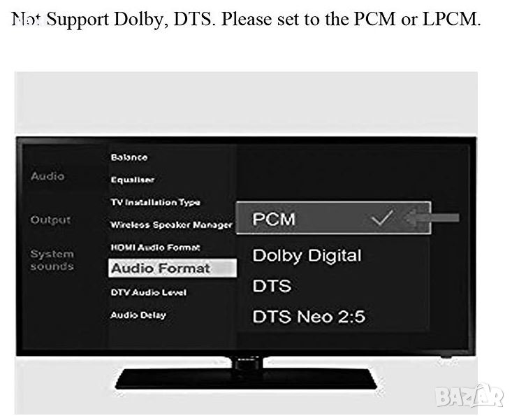 + С този DAC конвертор не е необходимо да настройвате телевизора си на LPCM/PCM аудио формат.