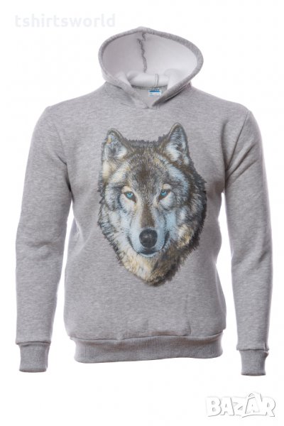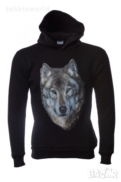 Нов мъжки суичър с трансферен печат Вълк със сини очи, в два цвята