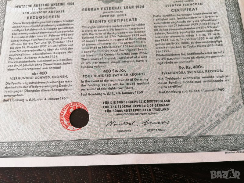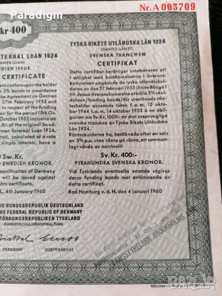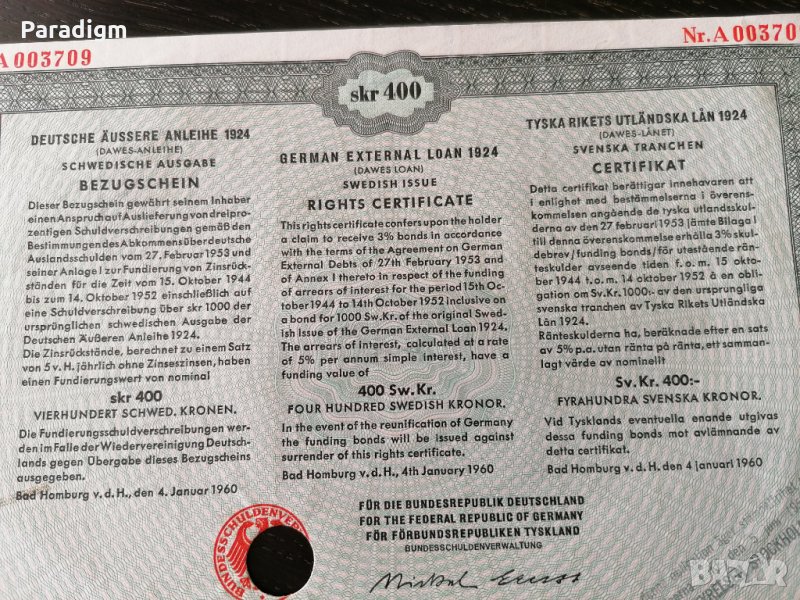 Германски външен дълг в шведски крони - 400 шведски крони