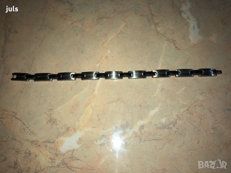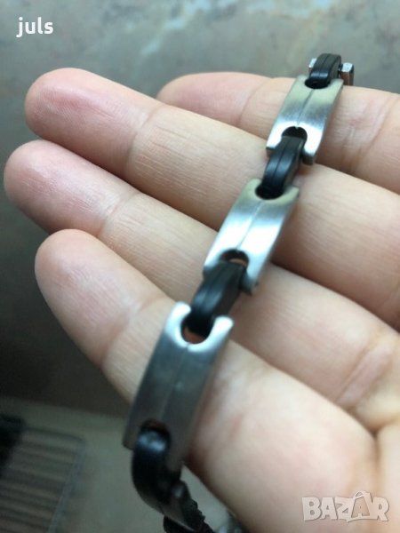 Мъжка гривна в черно и сребристо - Stainless Steel. Носена много малко. Дължина 21,2 см. Цена 40 лв.