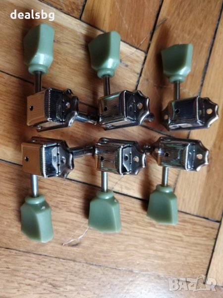 3л/3д нови,стандартни,комплект.Цвят на камбанките-джейд,тюркоазено,състарено зелено. Стават както за електрически, така и за акустични кънтри тип китари .
