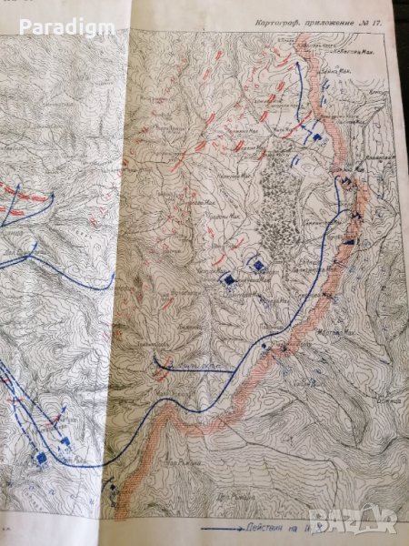 Стара карта, изобразяваща действията на 3-та Балканска дивизия на 15-ти и 16-ти октомври 1915г.