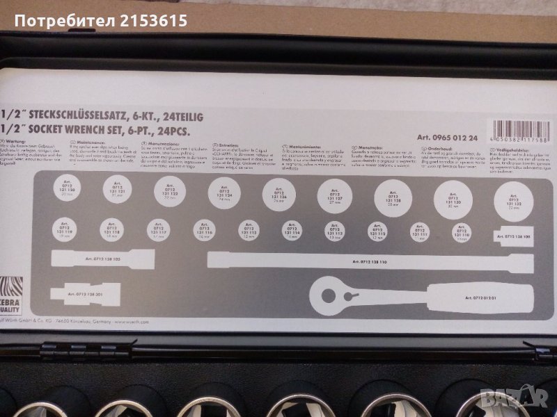 Wurth Zebra гидория 1/2 24части камъни комплект → Обява 27515847