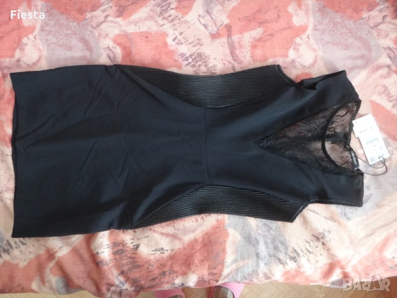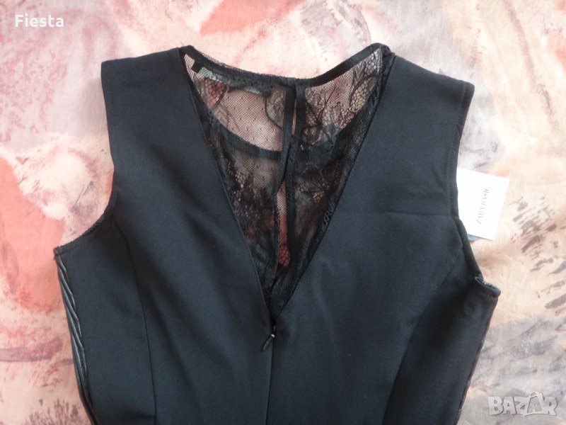 Нова с етикет, къса, черна рокля Зара, детайли от дантела и кожа, дължина-80см.