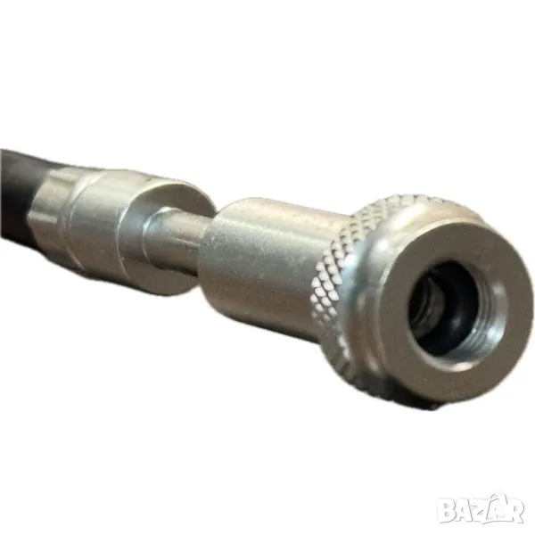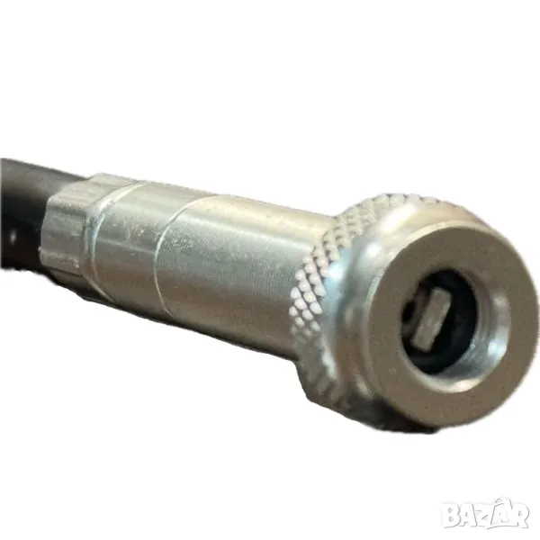 Накрайникът на маркуча може да се приспособява към двата основни вида вентили (френски и нормален) само с едно развиване.