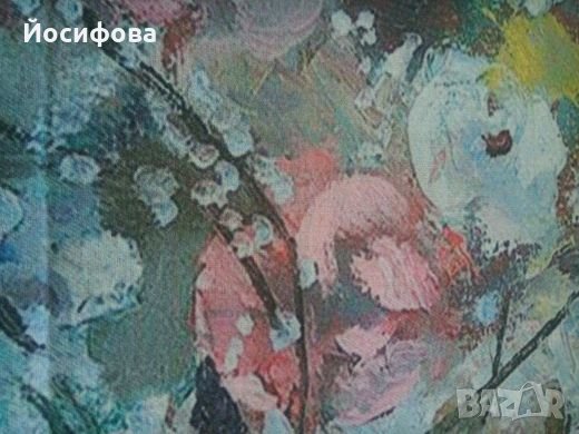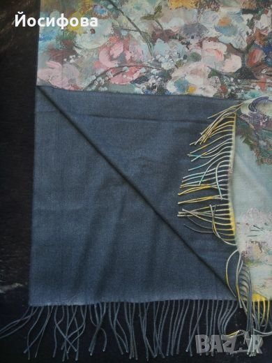 Много фин зимен дамски шал с две различни лица: едната представлява картина на ваза с цветя, а другата е чисто сива.