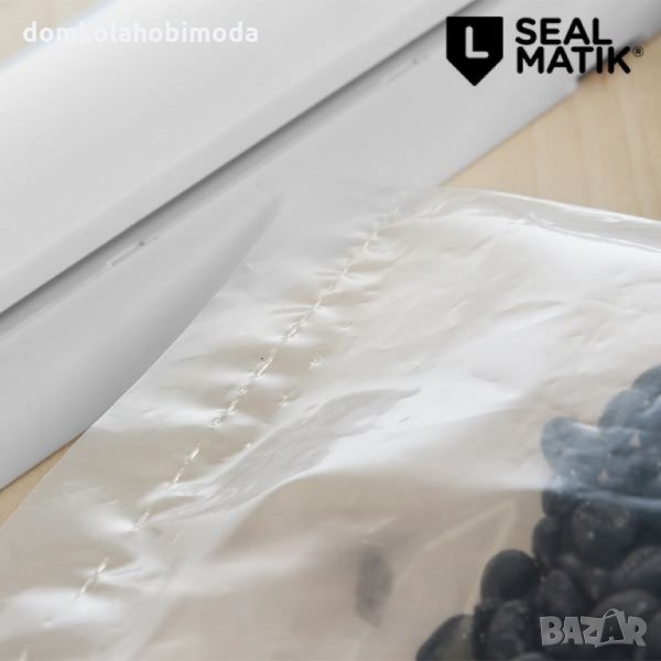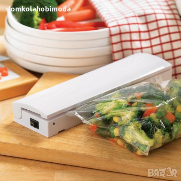 Може да запечатате макарони, бисквити,сандвичи,салати, спагети, бонбони, кексове, чипсове,солети др. - общо взето всякакви найлонови пликчета.