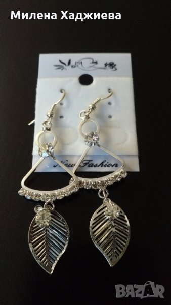 Висящи обеци с камъчета в сребристо. Нови. Дължина - 6.5 см