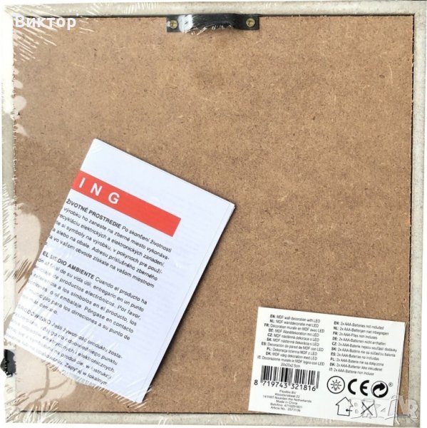 Картината е с прорязан надпис в дървената челна част. Под която има втрадено диодно осветлние.