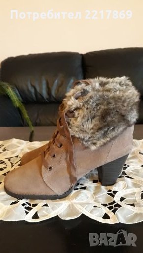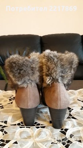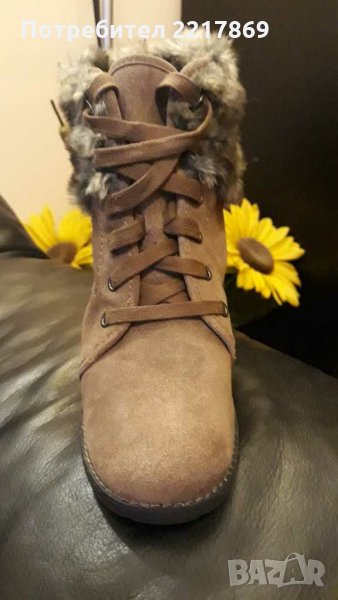 Перфектни, меки,топли и удобни боти Tamaris. Внос от Германия.Изпълнени са от естествен велур.Подметката на ботите е шита и лепена.От вътрешната страна имат мека и топла подплата. Височината на тока е 7см. Височината на ботите от петата до глезена е 13см. Размер на стелката 25,9см.Подметките имат грайфер срещу хлъзгане.