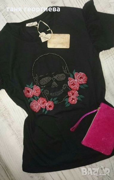 Актуална дамска тениска с интересен и модерен принт- череп от камъни и рози