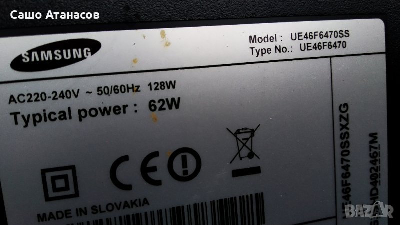 SAMSUNG UE46F6470SS със счупена матрица ,BN44-00623B ,BN41-01958A ,BN41-01939B ,CY-HF460CSLV1H