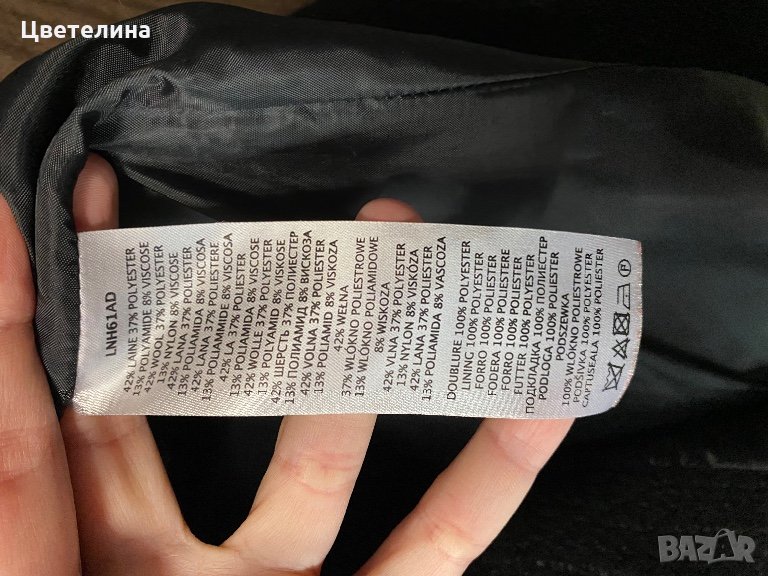 Палто с 42% вълна, размер на етикета е 38, според мен отговаря на размер S, Naf Naf
