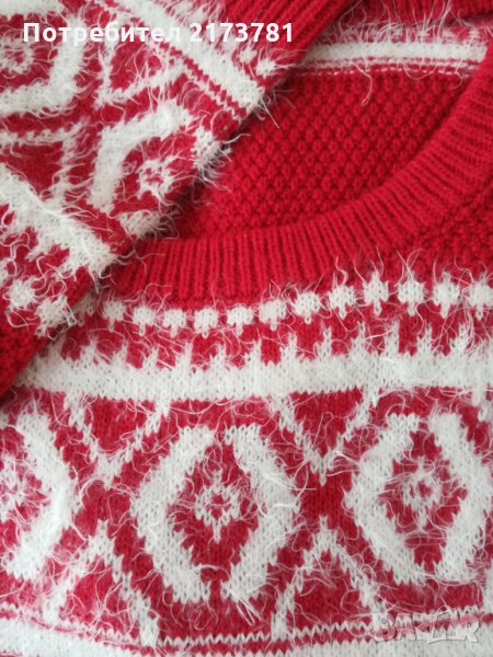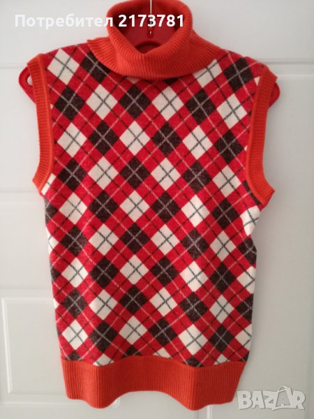 5 - Пуловер - керемидено-червен на ромбоиди, материя - кашмир, много мек и приятен, като нов - цена - 1,00 лв.