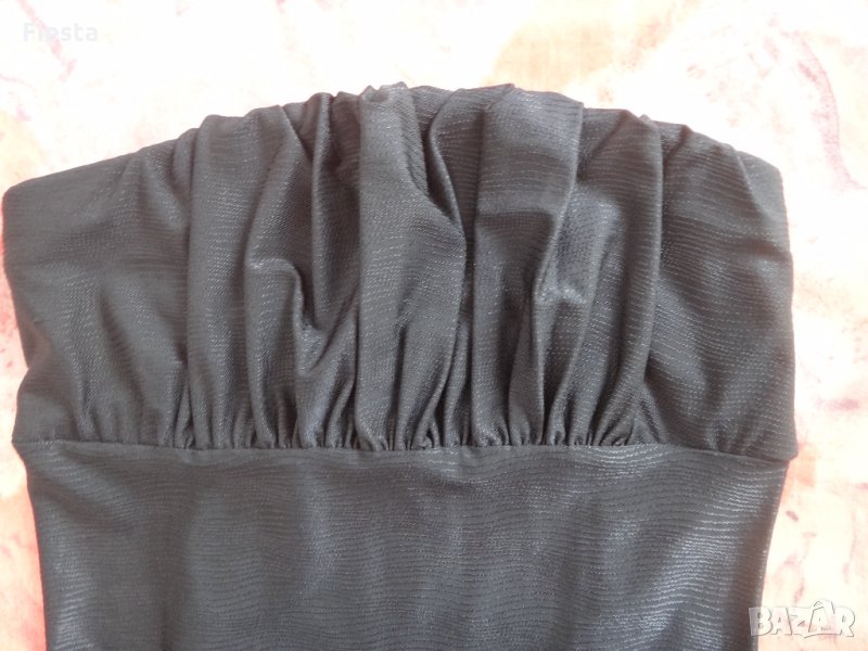 Черна рокля Iltokoni, в предната част стои като бюстие, на бюста с ластик, еластична, асиметрична, отпред е по-къса, отколкото отзад, дължина отпред-68см, отзад е по-дълга с 7см, ширина в талията-32см. Илтокини.