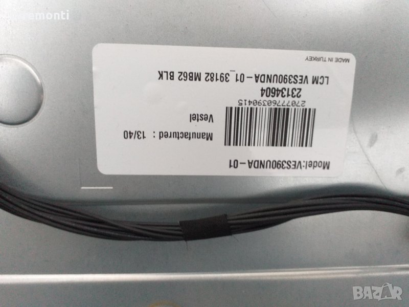 Демонтирана от телевизор със счупен дисплей VES390UNDA-01 POWER SUPPLY 17IPS20 040313R5 mainboard 17MB95 R3 050413 led 39 тесвана от нашия техник
