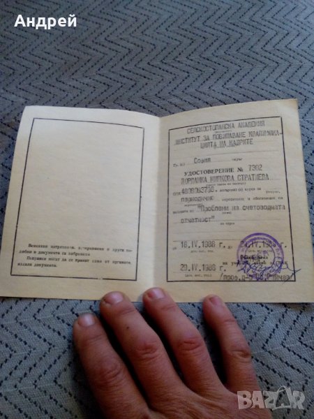 Старо удостоверение за опресняване и обогатяване на знанията, снимка 1 - Други ценни предмети - 27561452 Старо удостоверение за опресняване и обогатяване на знанията, снимка 2 - Други ценни предмети - 27561452 Старо удостоверение за опресняване и обогатяване на знанията, снимка 3 - Други ценни предмети - 27561452 1/3