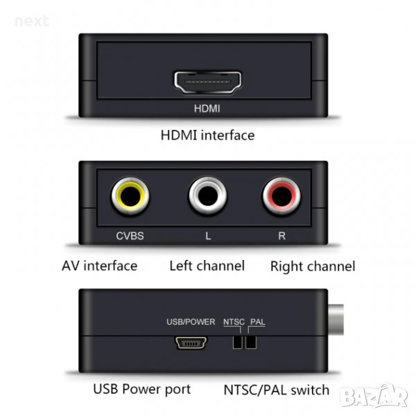 АКТИВЕН преходник HDMI към AV,RCA(чинчове) + Гаранция