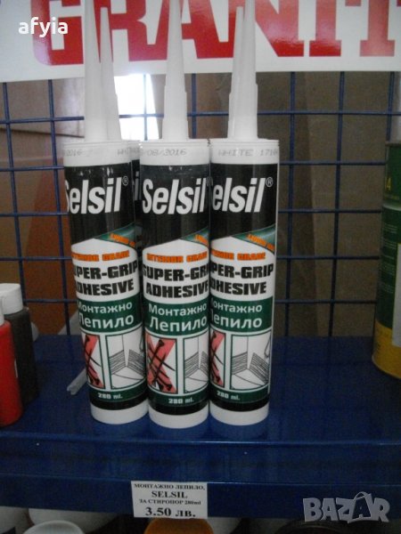 Предлагаме и монтажно лепило за стиропор SELSIL 280 ml. Разходна норма 12-15 м/за 1 опаковка. Цена 4,20 лв/бр. (2,15 €)