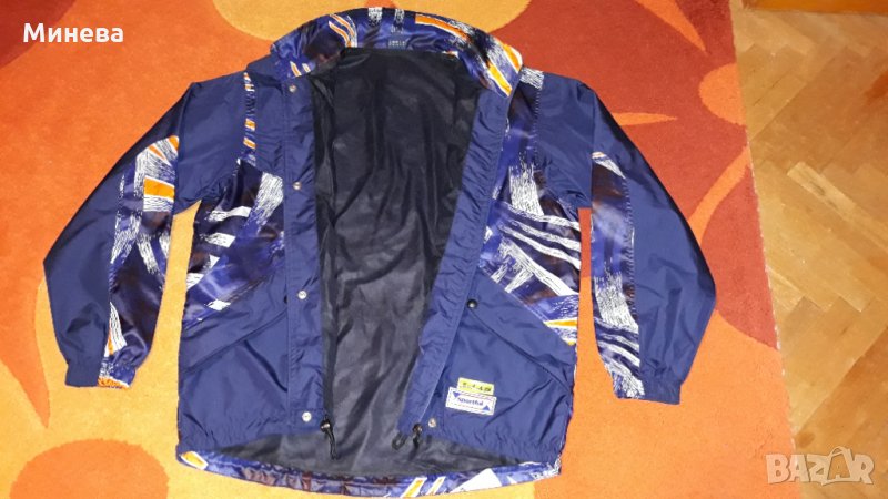 Пролетно-есенно модерно шушляково яке размер М. Затварянето отпред и на джобовете е двойно , посредством ципове и капси. Отдолу може да се регулира със скрит ластик. В основен тъмно син цвят с приятно цветни нотки. Подходящо за момичета и момчета.