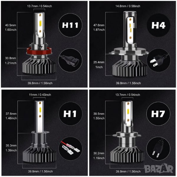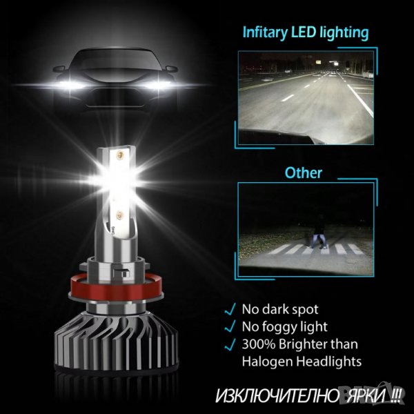 🔝 INFITARY ®️ ✔️12000LM ✔️6500K ✔️72W ✔️6500K H4 LED крушка за фарове H7 LED H11 H1 HB3 HB4 с 1860