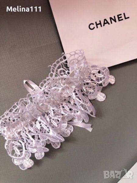 Дамски луксозен жартиер с богата френска дантела лукс може да се ползва и за сватба бял