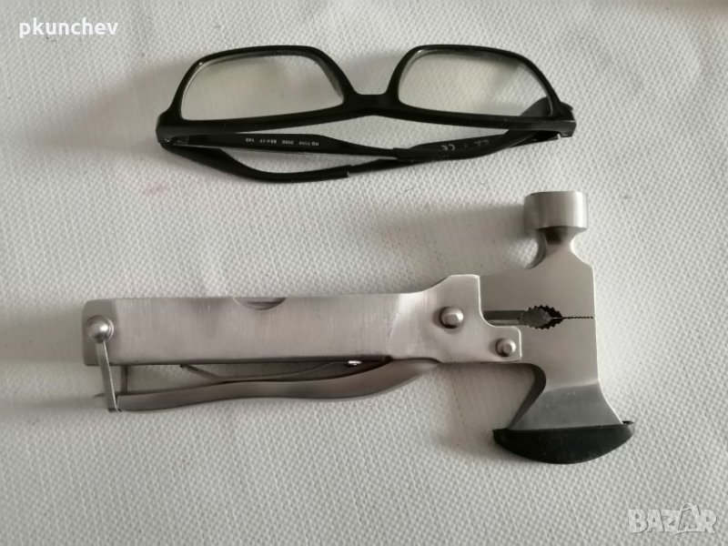 Има нож, отварачки, отвертки, гаечен ключ, клещи, чук, брадвичка, трион за дърво и за кости.