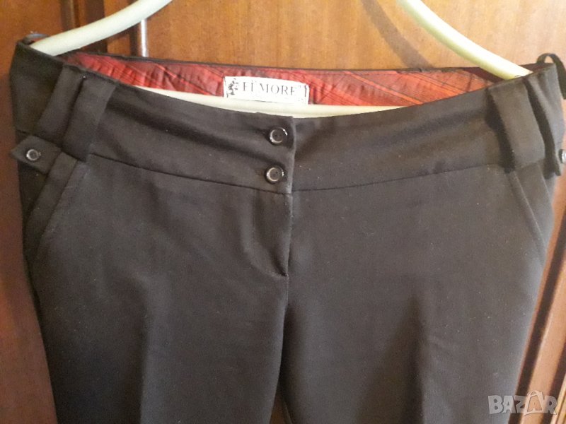 Дамски панталон черен с джобове отпред и отзад с копчета, малко използван, много добре стои, от хубава плътна материя. Размер 44-46 българска номерация