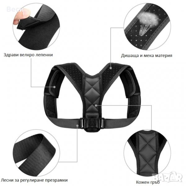 • Регулируеми презрамки – Всеки лесно може да нагласи коректора спрямо гръдната си обиколка.