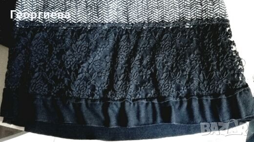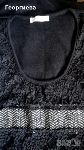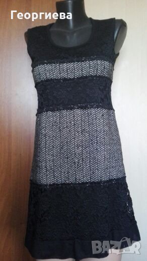 Много красива италианска рокля от трико, друг плат и дантела.Предната част е подплатена изцяло с трико.Задната част е също от трико.Има еластичност до S/M.