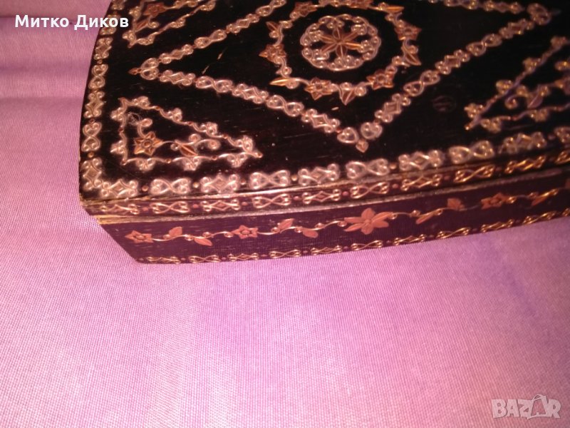 Дървена кутия с медни нишки 205х132х50мм-в много добро състояние -изпращам по еконт с отстъпка