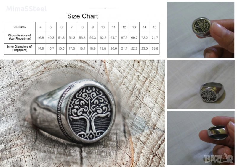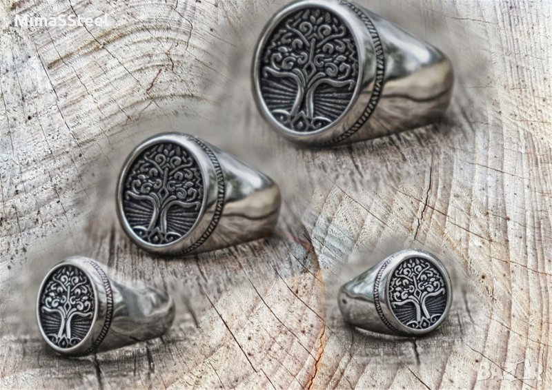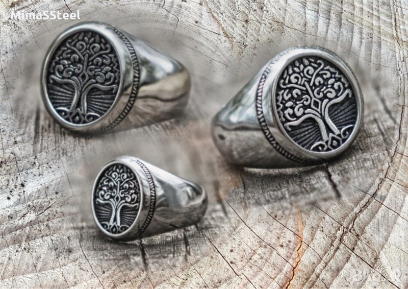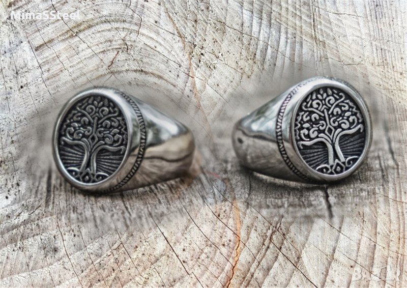 Мъжки стоманен пръстен Дървото на живота Stainless Steel 316L (Хирургическа стомана, Медицинска стомана).