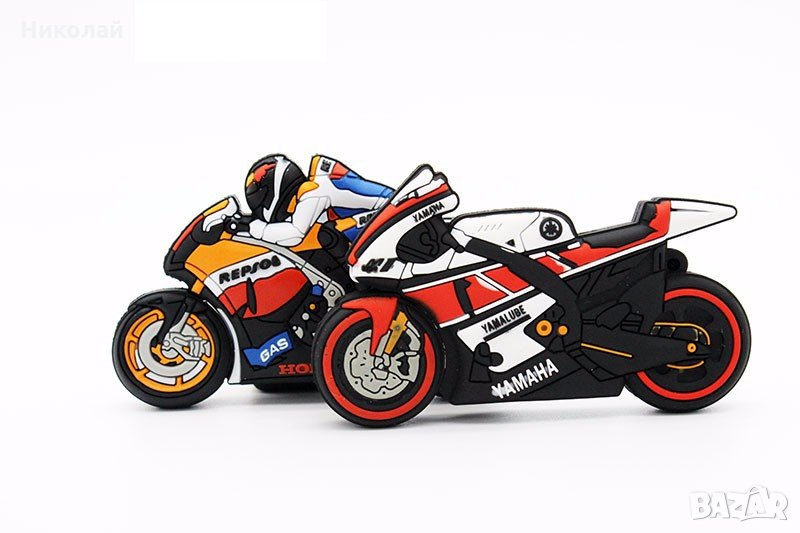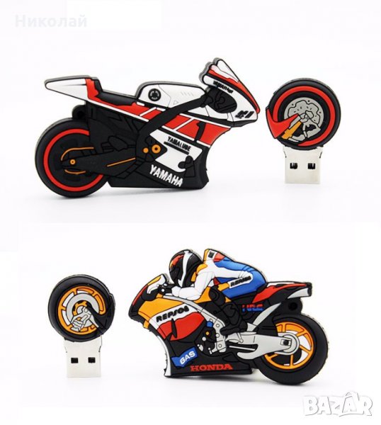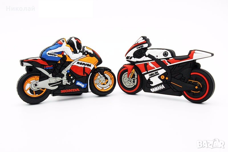 Интересни 3D флашки 32 гб. във формата на пистов мотор : Yamaha или Honda Repsol . Подходяща за подарък за моторджии , рокери , фенове на моторните спортове , MotoGP , Valentino Rossi , Márquez , рожден ден , имен ден и др.