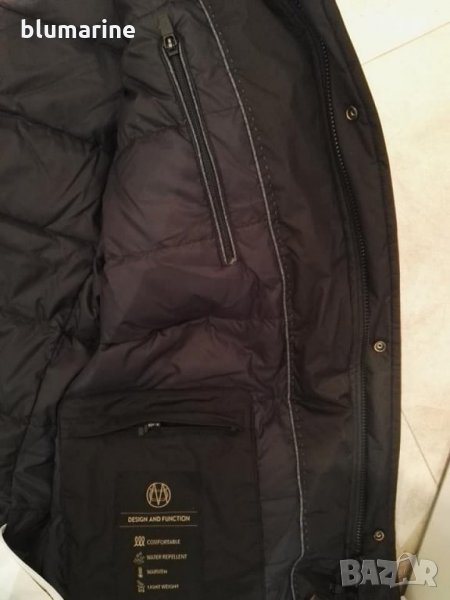 Топла мъжка шуба с качулка Massimo Dutti. Два долни странични джоба с копчета тик - так. Два горни и един долен вътрешни джоба с цип. Водоотблъскваща материя. Качулката е прикрепена с цип и се сваля. Двойна яка. Външна от водоотблъскваща материя и вътрешна от плетен ластик. Ръкава в китката има плетен ластик отвътре. В долната задна част на шубата има цепка с копче тик - так. Закопчаване с цип и копчета тик - так. Пълнеж: естествен пух - връхчета. Цвят - черен.