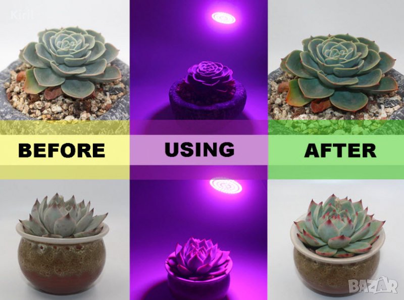 Синя светлина : За растеж и усвояване на растенията. Може да засили активността на хлоропласта, за да предотврати вретенето на растението, Но от друга страна, ще инхибира фотосинтезата, така че растението се нуждае от много синя светлина.