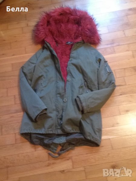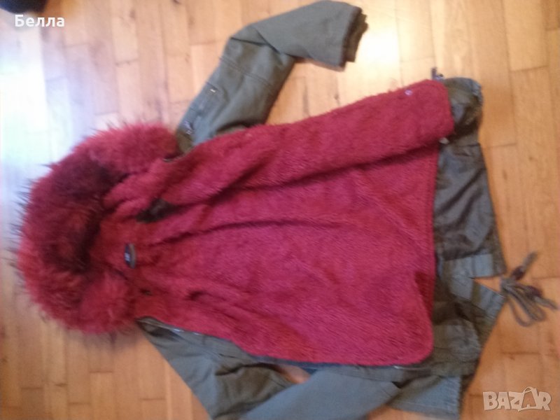 Много красиво и модерно яке, топла пухкава подплата,която се сваля и става пролетно яке, носено малко, стои чудесно, подплатата се сваля и става пролетно яке.