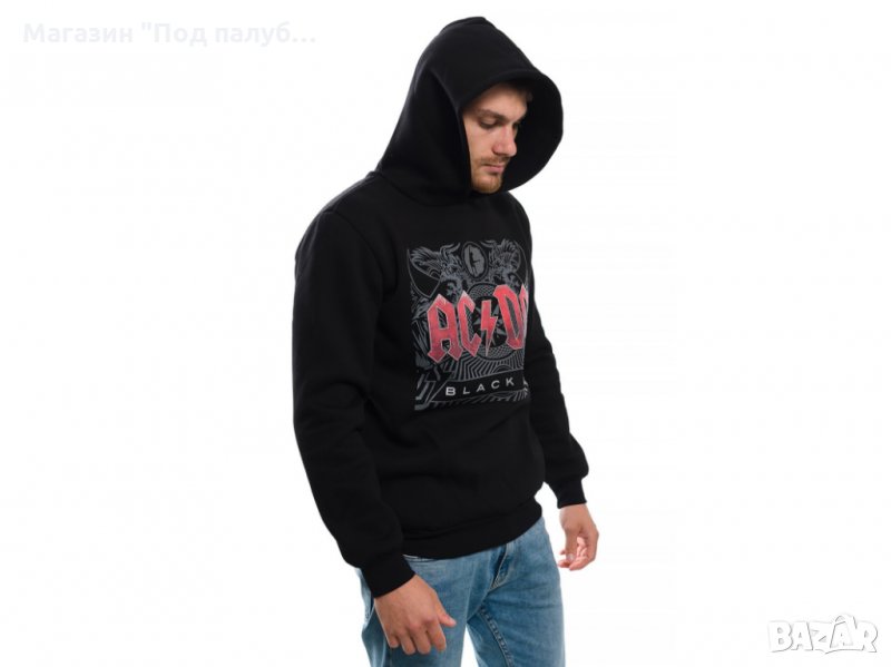 Нов мъжки суичър в черен цвят с качулка, две джобчета и дигитален печат на музикалната група AC/DC - Black Ice. Произведен в България от висококачествен 100% памук - триконечна пенирана вата с кардировка, което го прави изключително топъл и желан от нашите дългогодишни клиенти. Моделът е подходящ за пролетния и есенно-зимният сезон, има ластични маншети на китките и ханша, запазващи топлината. Разполага с мека подплата и два отворени джоба в страни. Свободната кройка го прави подходящ както за спорт, така и за ежедневно носене с дънкови панталони. Марката PRINTEX от години се слави със своите топли и качествени суичъри.