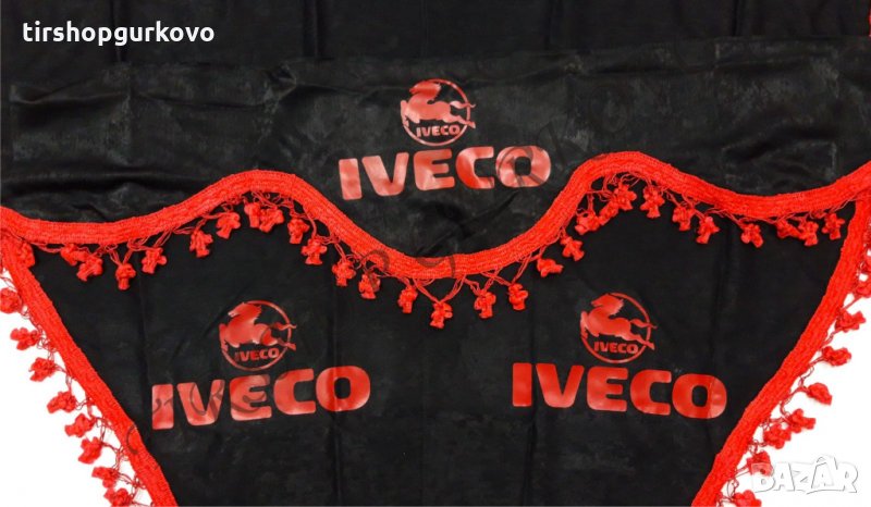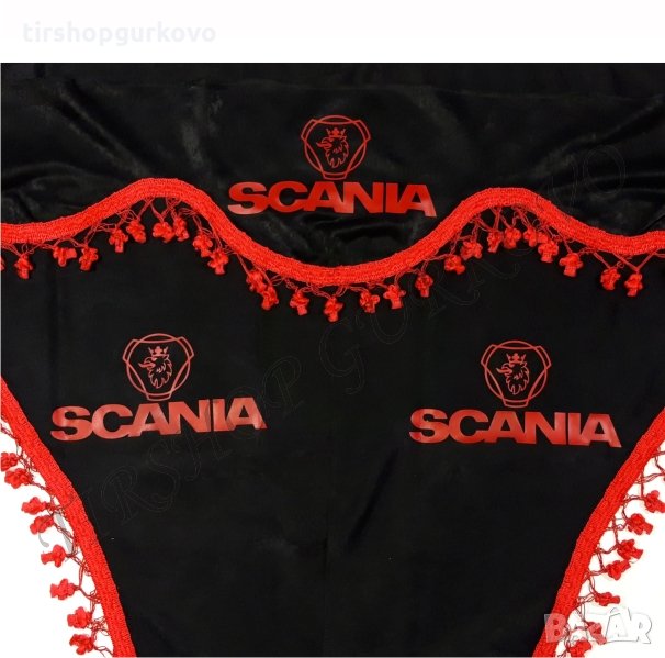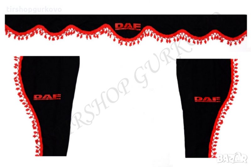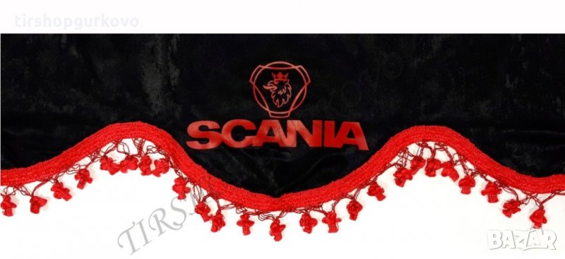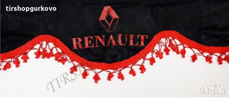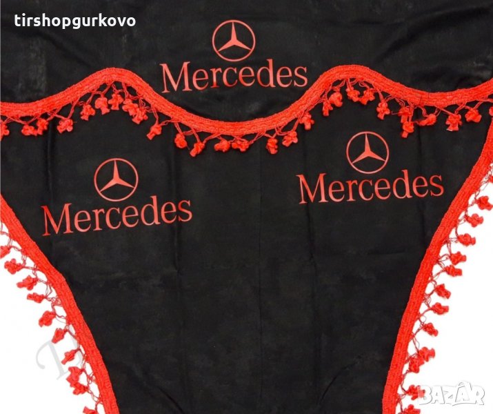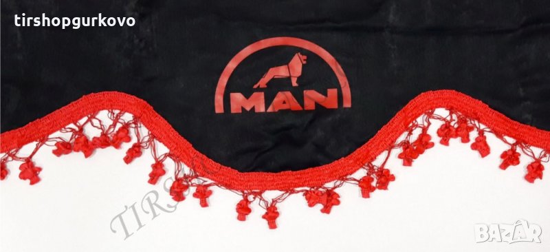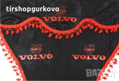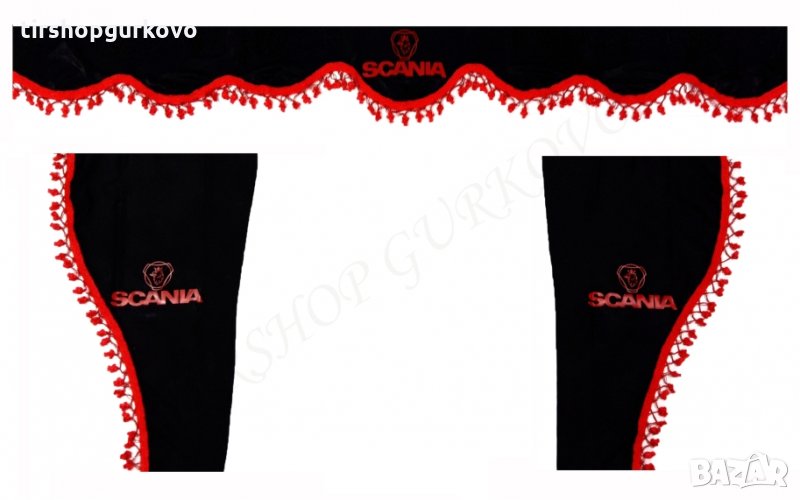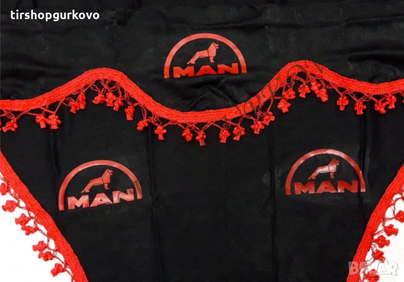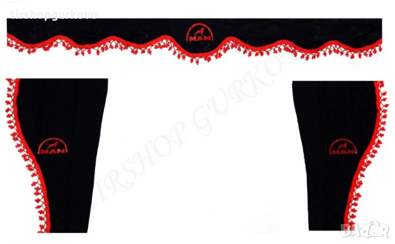 Комплект черни пердета с червени пискюли и лого → Обява 27639595