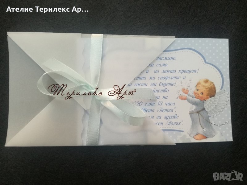 Нежна покана за кръщене с ангелче, снимка 1 - Други - 27653406 Нежна покана за кръщене с ангелче, снимка 2 - Други - 27653406 Нежна покана за кръщене с ангелче, снимка 3 - Други - 27653406 1/3