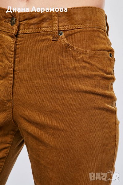 Нови прави дънкови джинси от еластичен памучен плат в цвят камел, отворени задни и предни джобове, закопчаване с копчета.