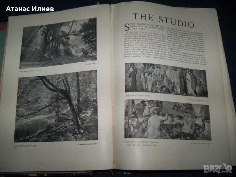Шест броя на английското месечно списание за изобразителни, изящни, приложни и декоративни изкуства, и архитектура "The Studio". Списанията са подвързани с твърди корици, съдържат множество фотографии, илюстрации и репродукции на произведения на изкуството, както и обширни статии посветени на тях. Списанията са както следва: