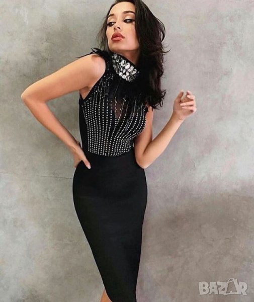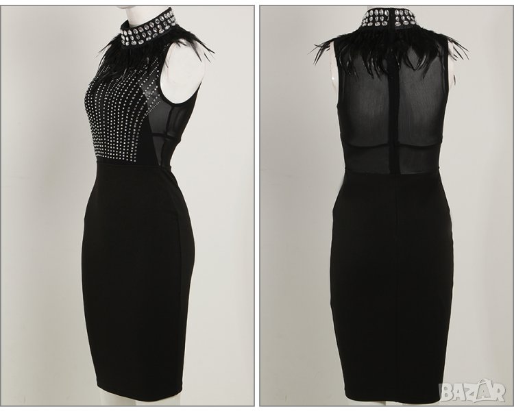 Официална бандажна черна рокля пера и камъни парти лукс Alessa Авин Cliche → Обява 27658198