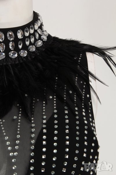 Уникална рокля обсипана с камъни и декорация от пера.