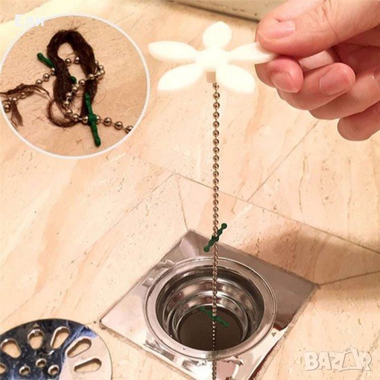 Поставена върху сифона, верижката ще го предпазва натрупването на косми и замърсявания.