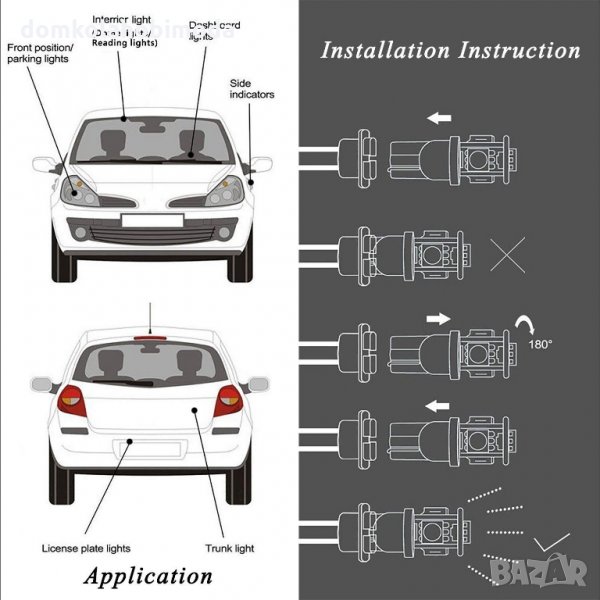 Приложими за : габарити, интериорни светлини светлини за часовник куполни светлини,осветление на вратите на праговете на задният номер за плафони мигачи . резервни светлини , задни габарити .